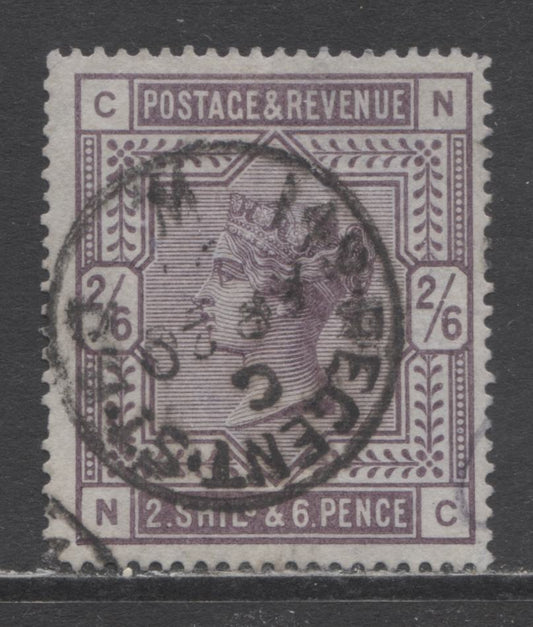 Lot 315 Great Britain SC#96 (SG#179) 2/6d Lilac 1883-1884 Postage & Revenue, Coloured Letters In The Corners , On White Paper, Large Anchor Watermark, A Fine Used Examples, Estimated Value $100
