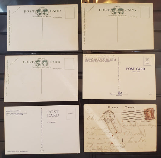 A Group of 6 Postcards From Winnipeg, Manitoba, Showing Various Views and Buildings, From The 1910's, 1940's and 1960's, Overall VG and VF, Net Est. $4
