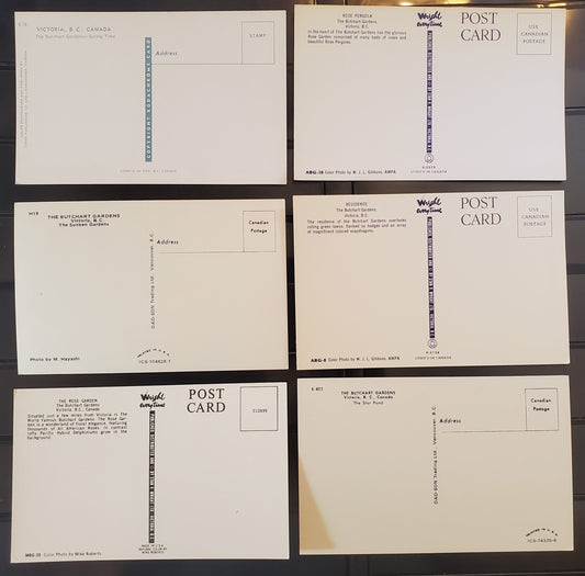 A Group of 6 Postcards From Victoria, BC, Showing The Butchart Gardens, From The 1960's, Overall VF, Net Est. $5