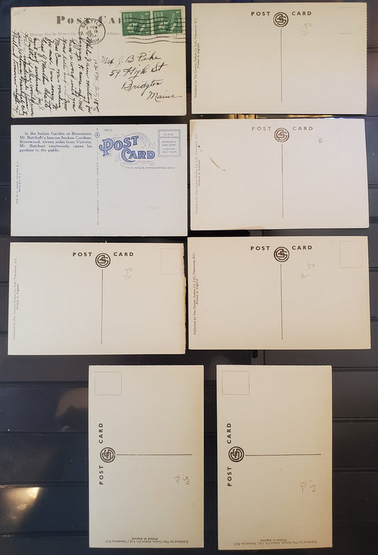 A Group of 8 Postcards From Victoria, BC, Showing The Butchart Gardens, From The 1930's and 1950's, Overall VF, Net Est. $15
