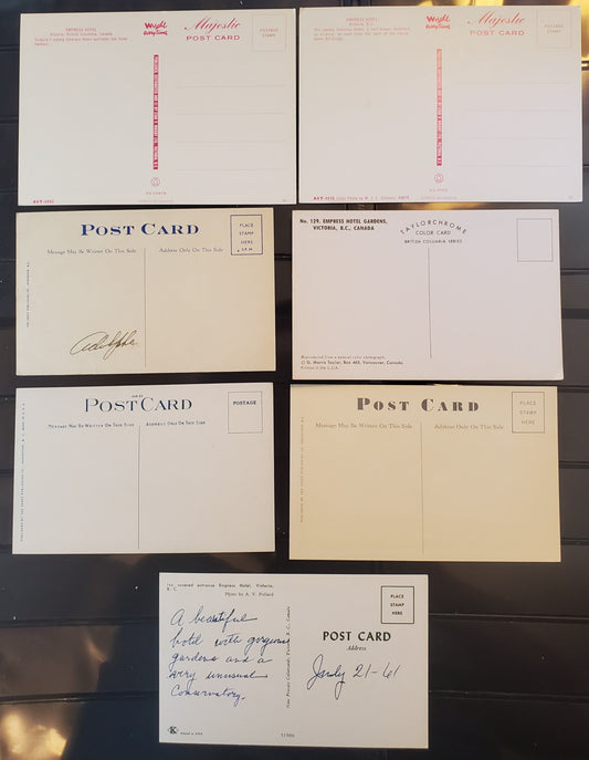 A Group of 7 Postcards From Victoria, BC, Showing The Empress Hotel, From The 1930's-1960's, Overall VF, Net Est. $10