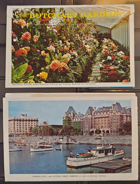 A Group of 2 Souvenir Postcard Folders From Victoria, BC, Showing The Butchart Gardens and Other Tourist Attractions, From The 1972 and 1974, Overall VF, Net Est. $10