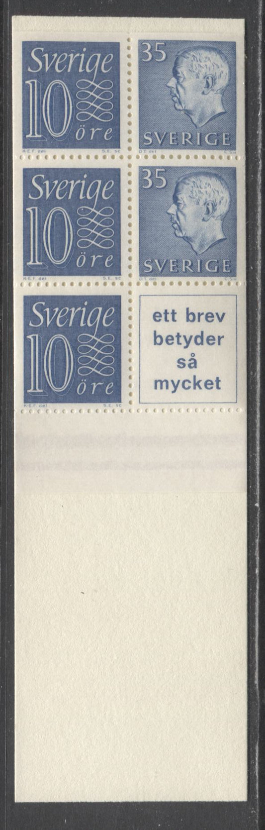 Sweden SC#586c (Facit #HA11BOV) 1963 Re-Engraved King Gustav VI Adolf Definitive Issue, With Inscribed Label, Inverted Pane, 10 Ore Stamps At Left, A VFNH Booklet of 6 (2 +3 + Label), Click on Listing to See ALL Pictures, Estimated Value $12