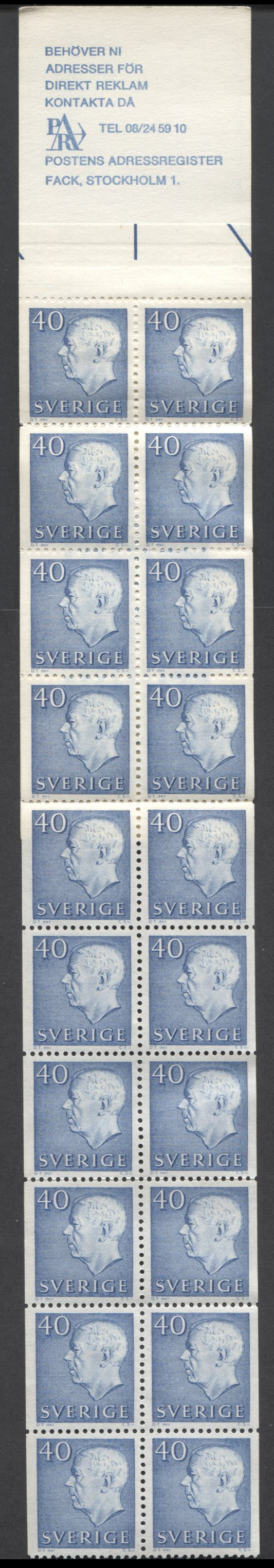 Sweden SC#669a (Facit #H165) 40 Ore Ultramarine 1965 Re-Engraved King Gustav VI Adolf Definitive Issue, With Centrally Placed Sneds, A VFNH Booklet of 20, Click on Listing to See ALL Pictures, Estimated Value $26