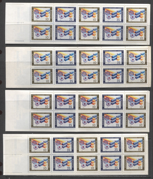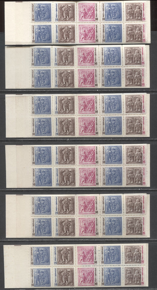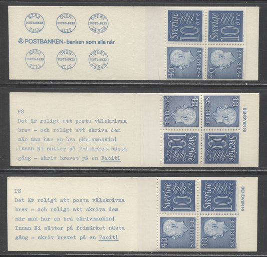Sweden SC#669b (Facit #HA12ARV/HA12B1RV) 1964 Re-Engraved King Gustav VI Adolf Definitive Issue, Different Back Cover Designs, Upright & Inverted Panes, 10 Ore Stamps At left and Right, 6 VFNH Booklets of 4 (2 +2), Estimated Value $22