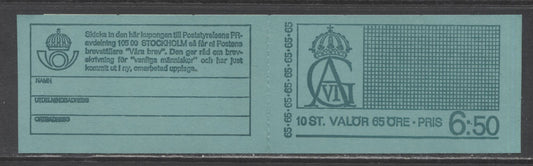 Sweden SC#672D (Facit #H246) 65 Ore Dull Blue Green 1971 Re-Engraved King Gustav VI Adolf Definitive Issue, A VFNH Booklet of 10, Click on Listing to See ALL Pictures, Estimated Value $8