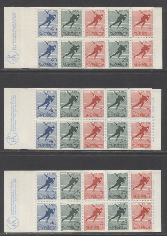 Sweden SC#698a (Facit #H176A1/H176B2) 1966 World Speed Skating Championships Issue, Bright Blue on White English, And Ultramarine Swedish Covers, Bisected and No Registration Markings, 3 VFNH Booklets of 10 (2+4+4), Estimated Value $7