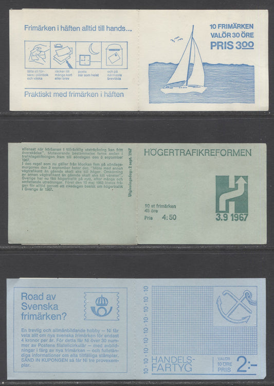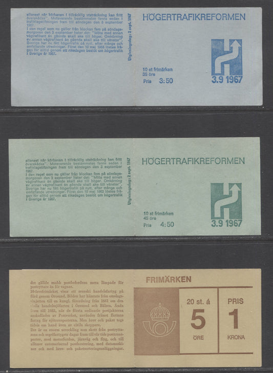 Sweden SC#735a(Facit #H192)/756a (Facit #H195CII) 1967 Adoption of Right Hand Driving Issue & Pictorial Definitives, LF and DF Covers, 3 VFNH Booklets Of 10 And 20, Click on Listing to See ALL Pictures, Estimated Value $6