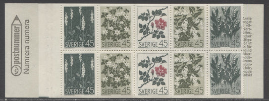 Sweden SC#786a (Facit #H205AT1) 45 Ore Deep Green, Olive Green & Carmine 1968 Wildflowers Issue, 85 x 63 mm Cover, Perforations at Right Mechanically Trimmed Rather Than Torn, A VFNH Booklet Pair, Estimated Value $15