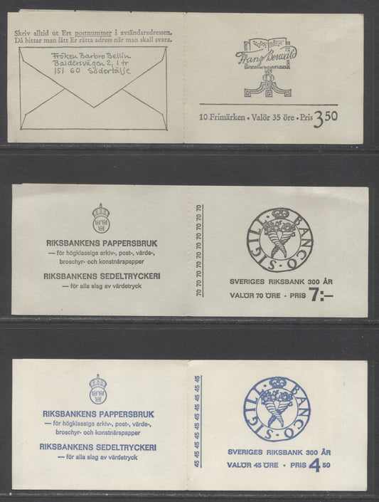 Sweden SC#775a (Facit H202) -779a (Facit H204) 1968 Franz Berwald & National Bank Issues, DF and HF Covers, 3 VFNH Booklets of 10, Click on Listing to See ALL Pictures, Estimated Value $26