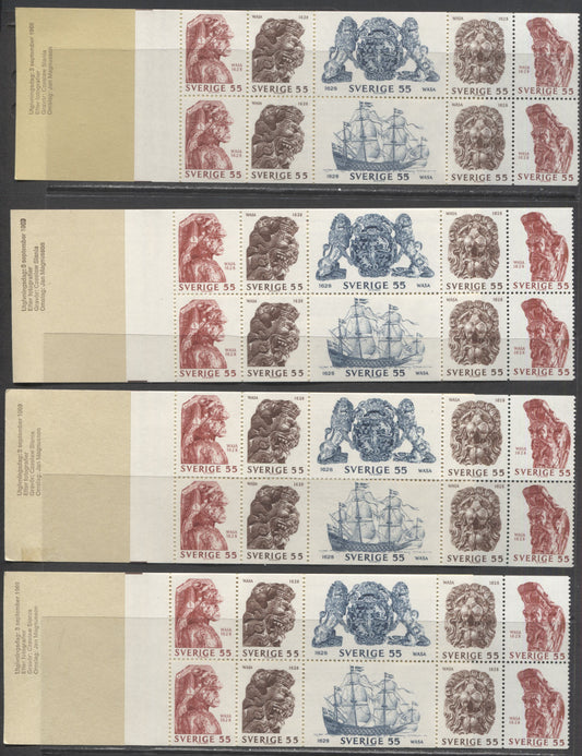 Sweden SC#830a (Facit #H225A) 55 Ore Red Brown, Brown & Grey Blue 1969 Salvage of WASA Issue, Dextrine & Spotty White Gum, MF-fl Violet, LF-fl Covers, 3 VFNH Booklets of 10, Click on Listing to See ALL Pictures, Estimated Value $39