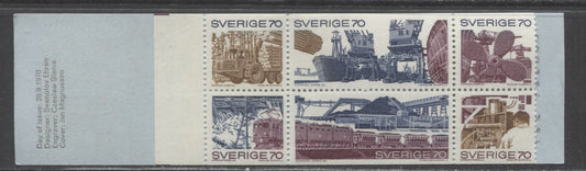 Sweden SC#866a (Facit #H234B) 70 Ore Multicoloured 1970 Swedish Industrial Life Issue, LF English Cover, Strong Tagging, A VFNH Booklet of 6 (1x6), Click on Listing to See ALL Pictures, Estimated Value $17