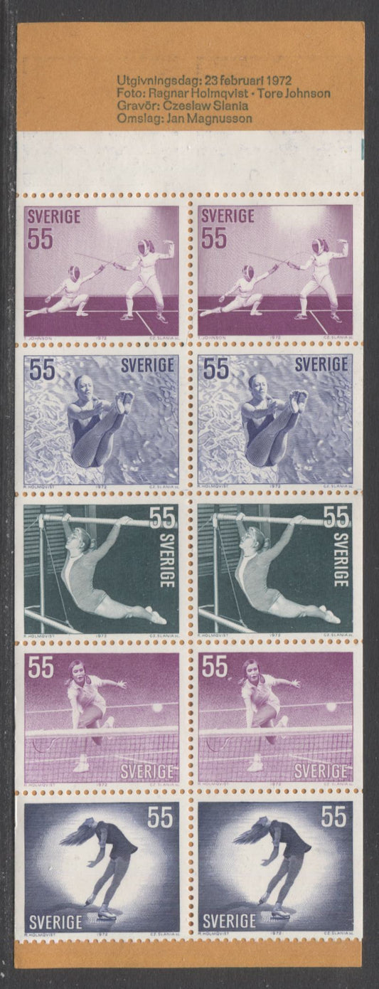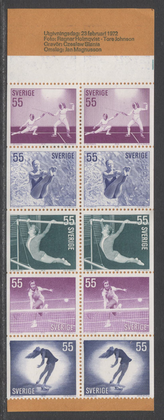 Sweden SC#918a (Facit #H253) 55 Ore Blue, Blue Green & Purple 1972 Women Athletes Issue, Weak Tagging, A VFNH Booklet of 10, Click on Listing to See ALL Pictures, Estimated Value $13
