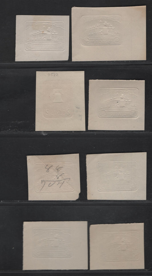 United States SC#U385-b, U386,b, U387-W389 2c Carmine - Pink Washington, 1903 Heads Issue, 8 Fine/Very Fine Used Singles, White, Amber, Oriental Buff, Blue & Manilla Papers, All Die 1