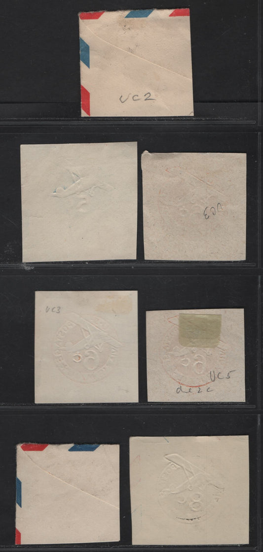 United States SC#UC1-IC7 5c - 8c Blue - Olive Green Airplane, 1929-1944 Airmail Issue, Very Fine Used Singles, 5c Blue Dies 1-2, 6c Orange Dies 2a-3c