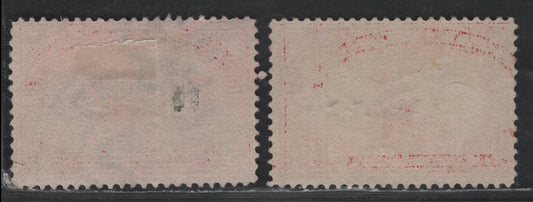 United States SC#U411avar 2c Carmine Franklin, 1907-1916 Heads Issue, 2 Very Fine Used Singles White laid Paper, WO of TWO Joined, Normal for Comparison