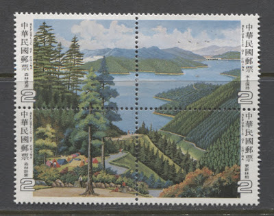 A special type of se-tenant design in which the complete design occupies several stamps, with no border between stamps is called a continuous design. The above block of four stamps from Taiwan is an example of a continuous design in which all four stamps are required to be able to see the full design. As you can see there is no border on the inside edges of each of these stamps, with the design going all the way to the perforations. In most se-tenant multiples, the designs are discrete and fully contained within each stamp. A special type of continuous design involving three stamps is called a triptych. Many countries that issued christian themed stamps for Easter or Christmas issued triptych designs.