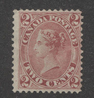 The term "centering" refers to how even the margins around the stamp design within the stamp's perforations are. Oftentimes, in the first 50 years or so since the introduction of perforations as a means of separating stamps within sheets, not enough room was left between printed stamps for each stamp to have margins on all sides. The stamp on the right above, from 1864 is an example of a stamp that only has a margin on three sides of the design, and even then, these are not even. Such a stamp is said to be "off-centre". To many, this off-centre stamp appears to be very poorly centred, but this example is actually very well centered for the stamps of this time period, which were very often much worse than this.