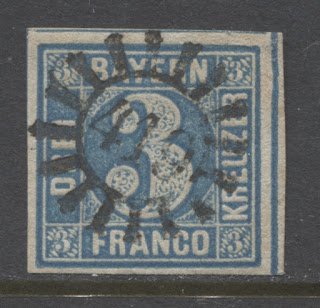 A cogwheel cancellation is a circular cancellation that has radiating spokes that resembles a cogwheel. Often, but not always, there will be a numeral in the centre part of the cancellation, which corresponds to the particular postal district or office to which the cancellation was assigned. Cogwheel cancels such as the one shown above are found on the early stamps of Bavaria and China.