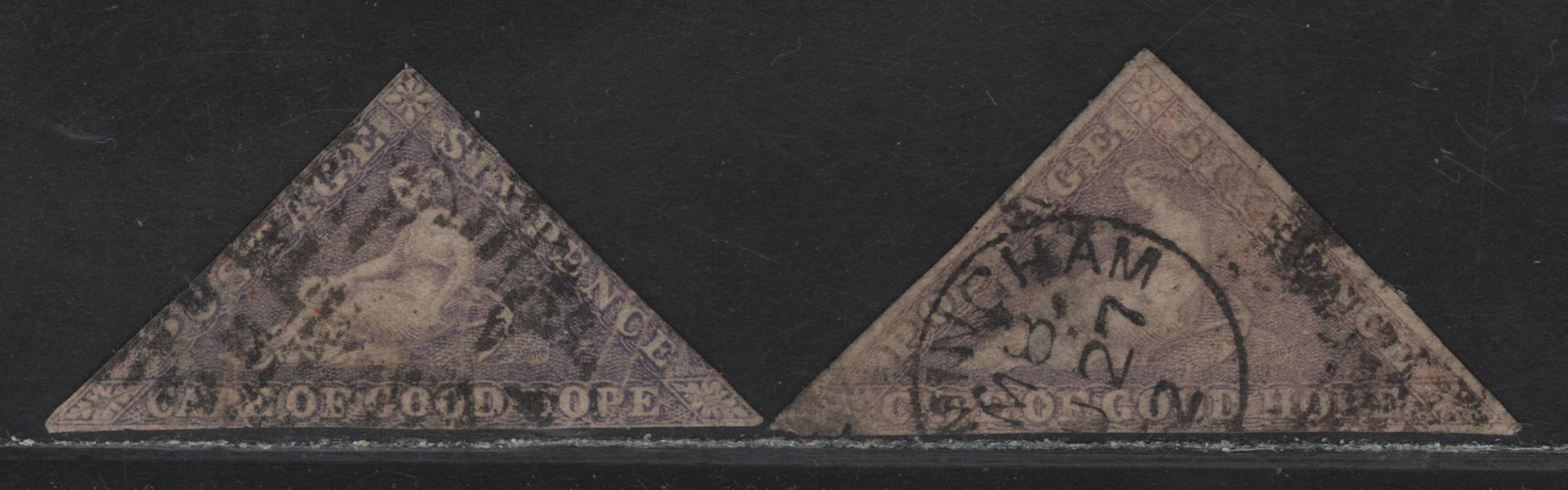 Lot 26 (C) Cape of Good Hope SG#7, 7b 6d Pale/Deep Rose Lilac On White Seated Hope, 1855-1863 Seated Hope Issue, 2 Ungraded Singles, Moderate Faults
