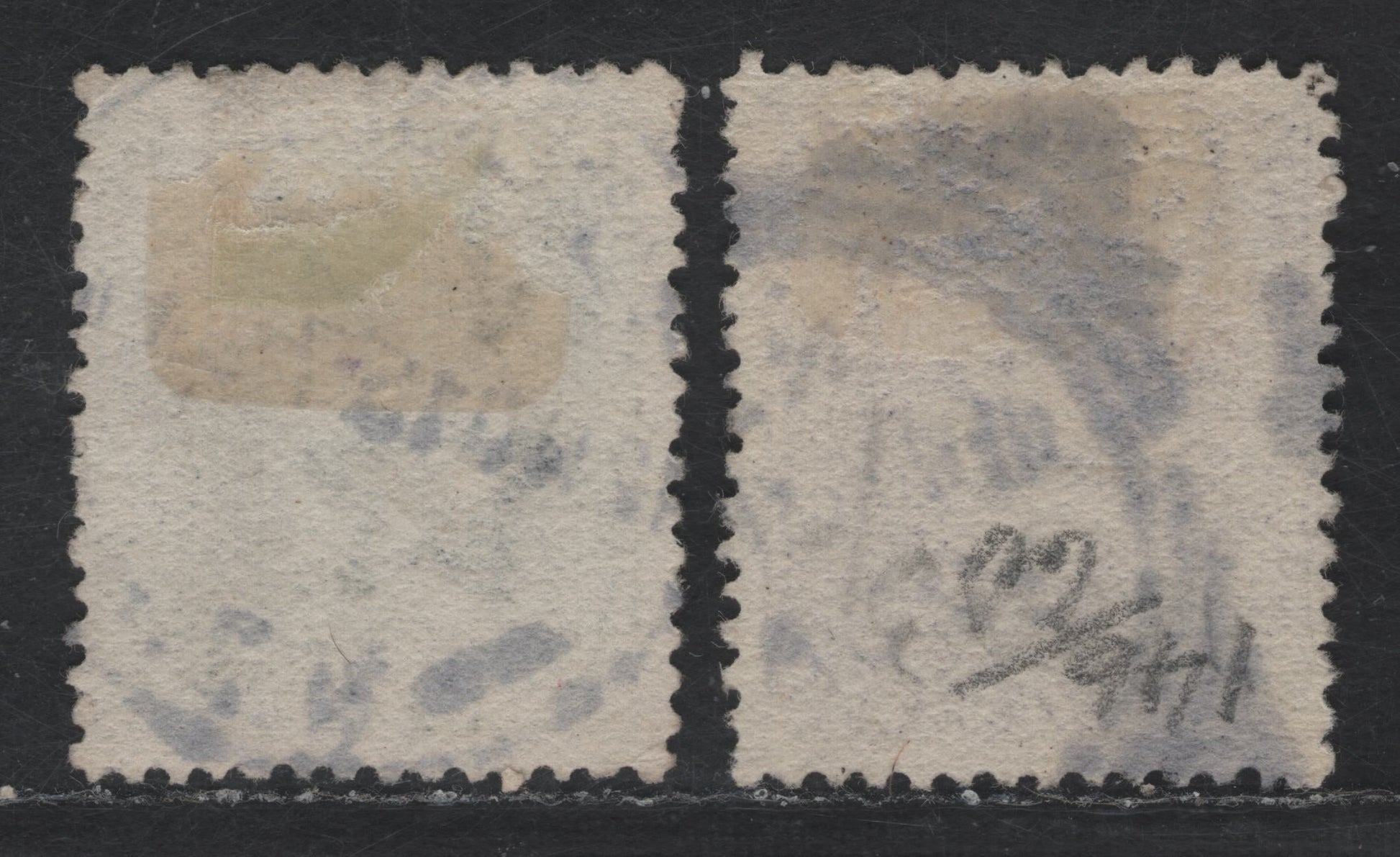 2 fine/very fine used singles of the 1/2d - 2d gray slate - bright violet King George V from the 1915-1930 KGV Sideface Issue, perf 14x14.5.