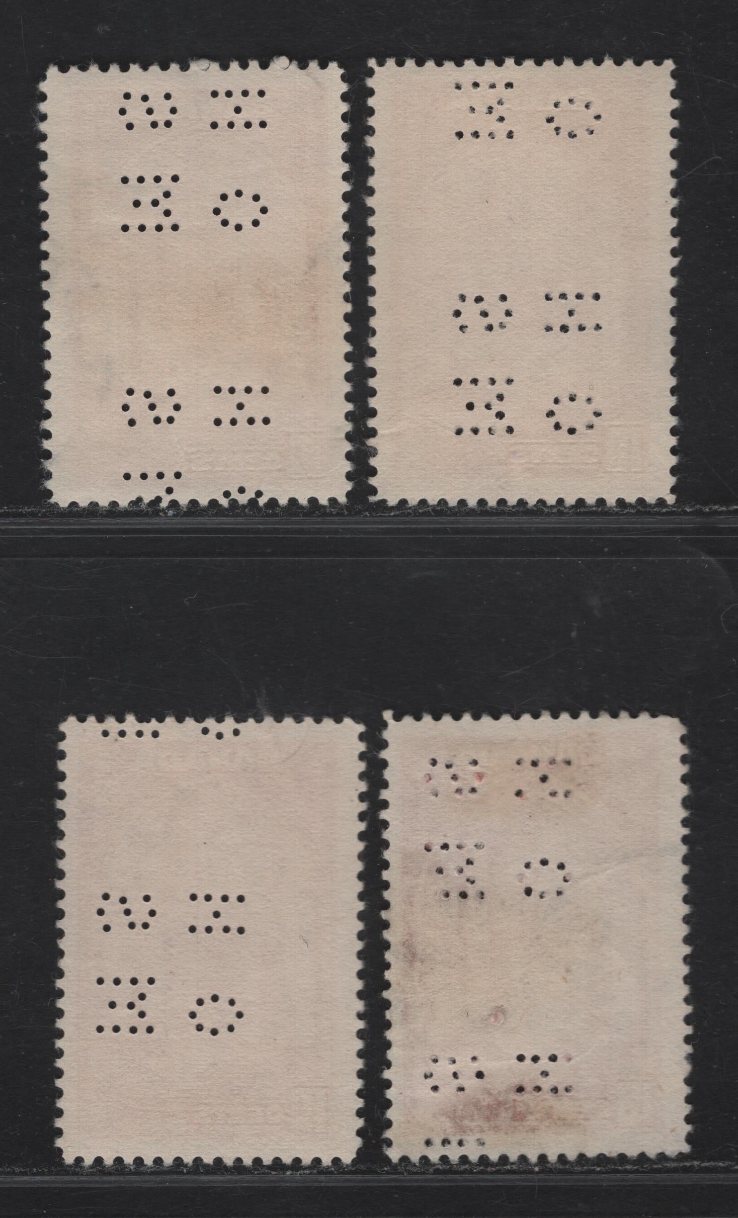 Lot 352 Canada #O9-241a 10c Carmine, Bright Carmine Memorial Chamber, 1938 Pictorial Issue, 4 F & VF Used Singles On Paper Types CBN-B, CBN-G And CBN-I. 4 Hole OHMS Perfins From Position 2.