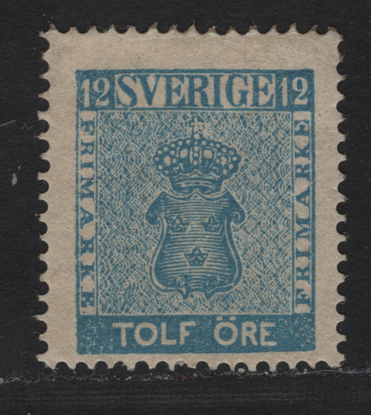 Lot 4 Sweden SC#8 (Facit #9d3) 12o Light Blue Arms, 1858-1862 Arms Issue, A FOG Single, 1865 Perf (Clean Cut, But Not Fully Regular), Dry Gum