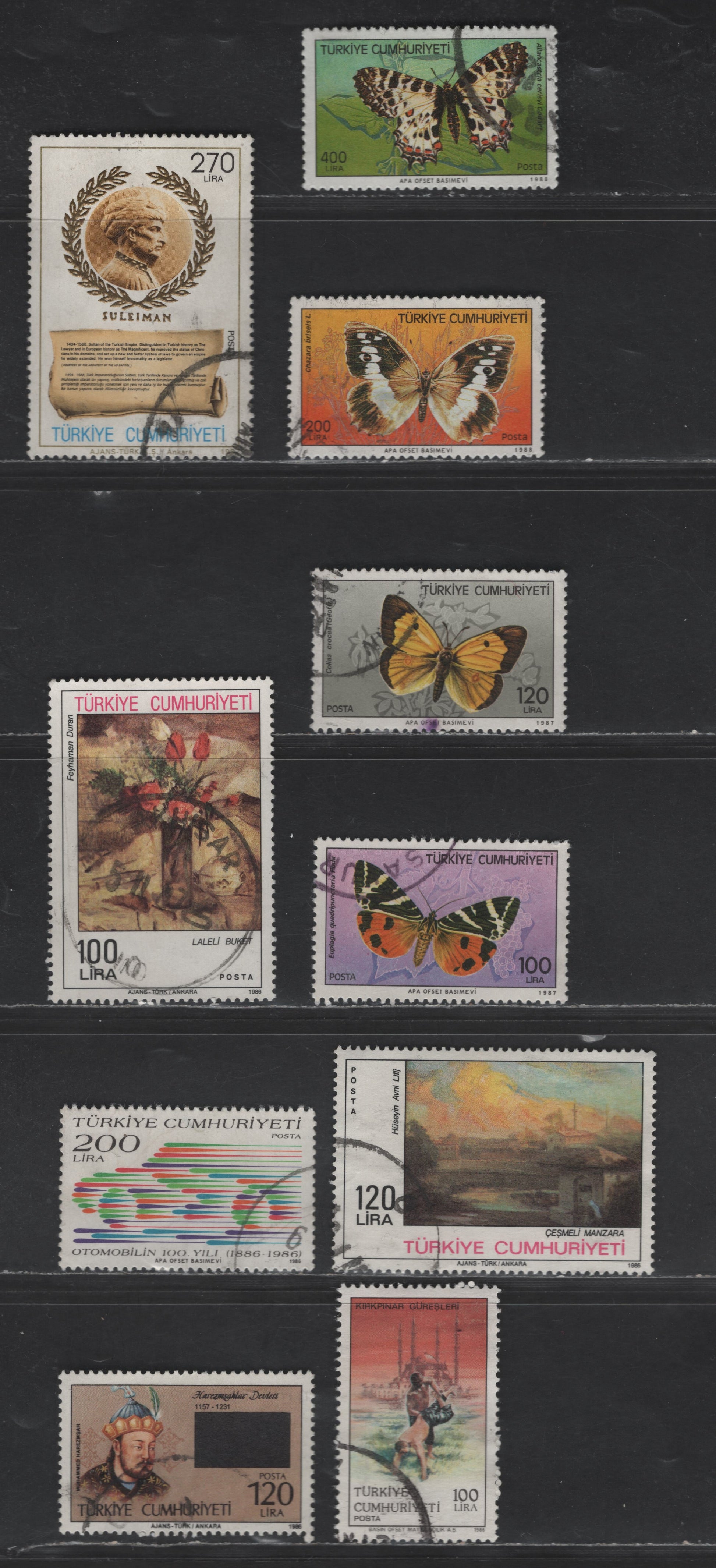 Turkey SC#2352/2423 1986-1988 States / Butterflies Issues, 10 Very Fine Used Singles, Click on Listing to See ALL Pictures, 2017 Scott Cat. $14.9